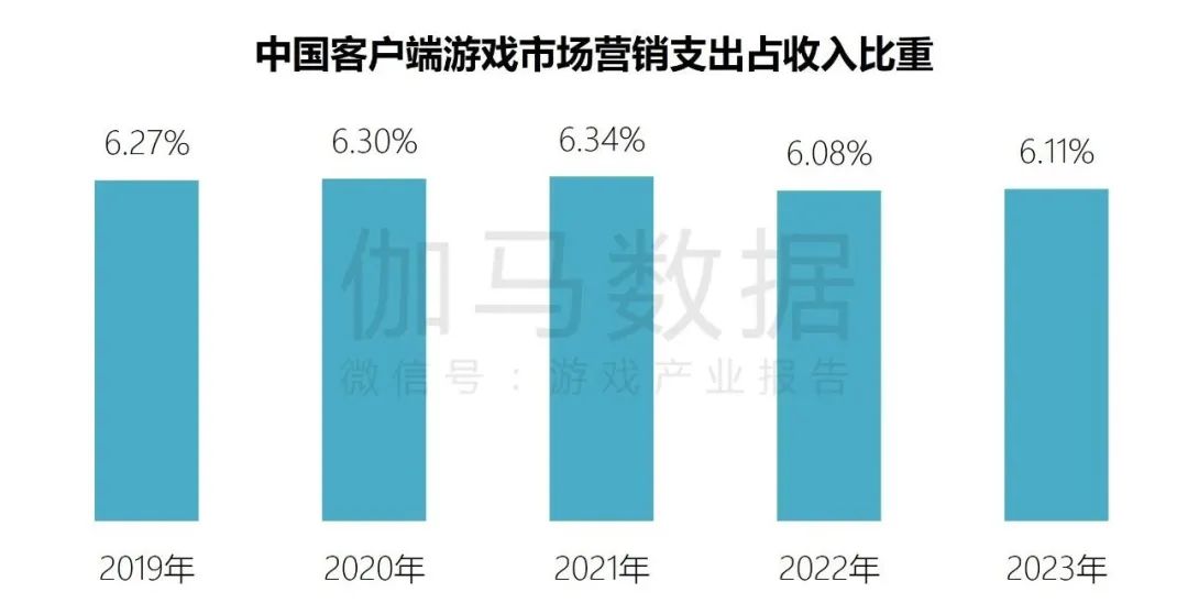 与此同时,伽马数据发布的《客户端游戏市场营销发展报告》显示,2019年至2023年间,客户端游戏市场营销费用保持在6%的水平,远低于手机游戏市场营销费用总额的15%。