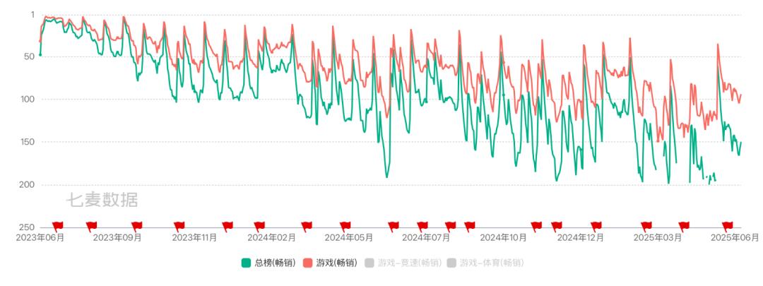 2023年6月20日-2025年6月15日《巅峰速度》排名趋势,图源七麦数据