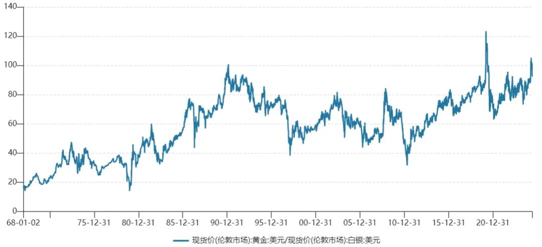 因为白银单位价值低,不稀缺,所以再也没有恢复其辉煌地位。历史上很长一段时间,金银价格比例的平均值已经达到了15。:1上下,也就是说,一盎司黄金的价格是一盎司白银价格的15倍左右。进入现代后,这一比例不断上升。目前,金银比例接近100。:1。