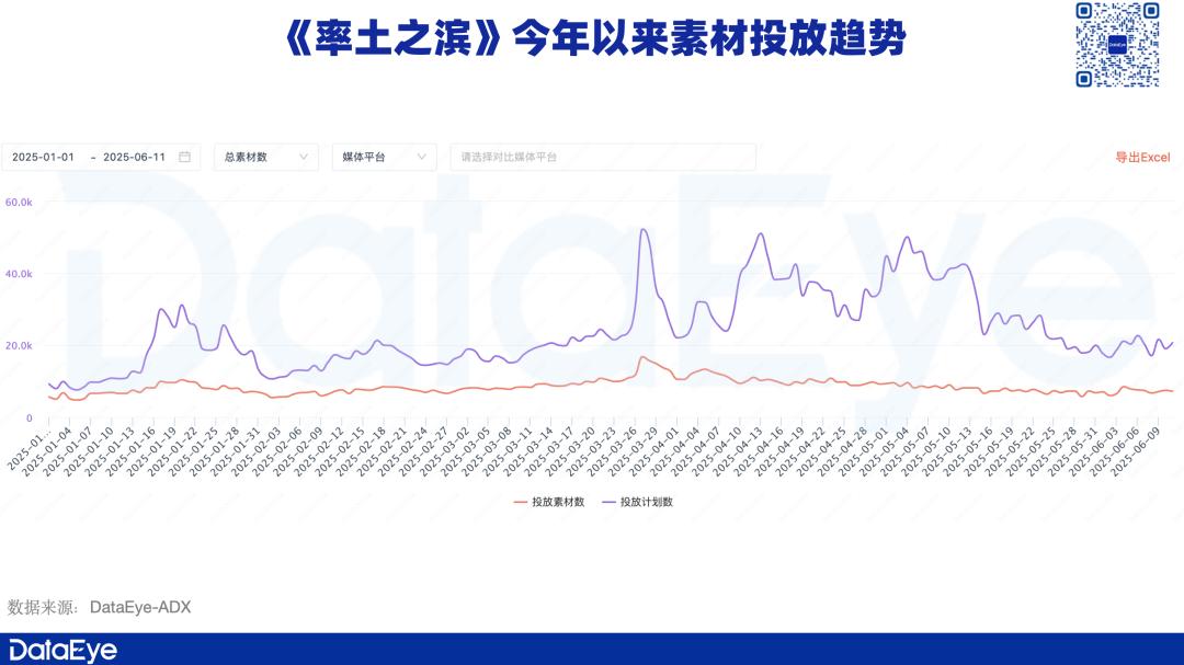 不仅如此,DataEye-ADX显示,今年以来,《率土之滨》在材料投放方面有了显著增长,