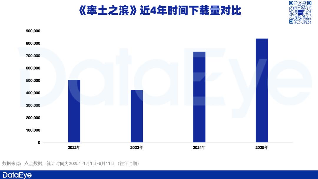 随着时间的延长,《率土之滨》今年以来的下载量创历史新高,比2023年增长100%,直接翻了一番。