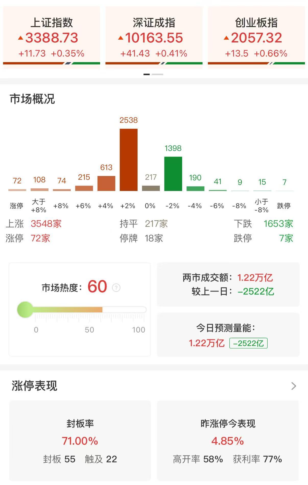 截至收盘,上证指数上涨0.35%,深成指上涨0.41%,创业板指数上涨0.66%。