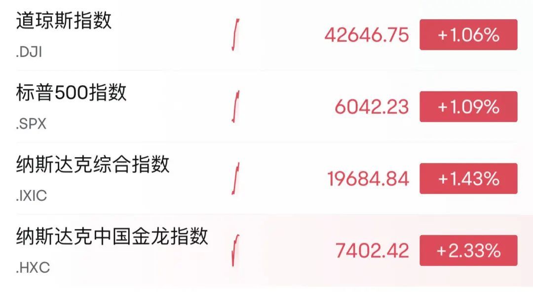 当地时间6月16日,美股三大股指全线高开,截至发稿时,道指、标普500指数、纳指均涨幅超过1%。