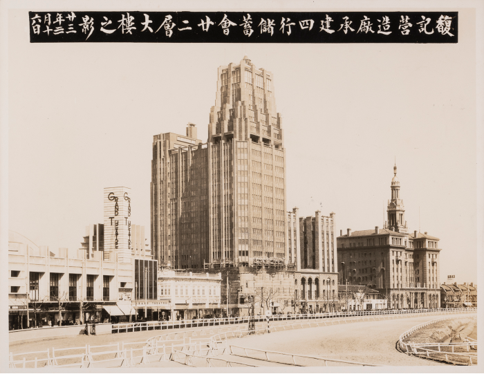 1934年3月,展出了一家新建的国际酒店,大光明电影院也可以在照片中看到。国际酒店于1934年12月建成投入使用,由匈牙利建筑师邬达克设计。国际酒店高达22层,标志性的阶梯式塔楼,垂直线条,几何装饰,体现了美国摩天大楼典型的装饰艺术建筑风格。