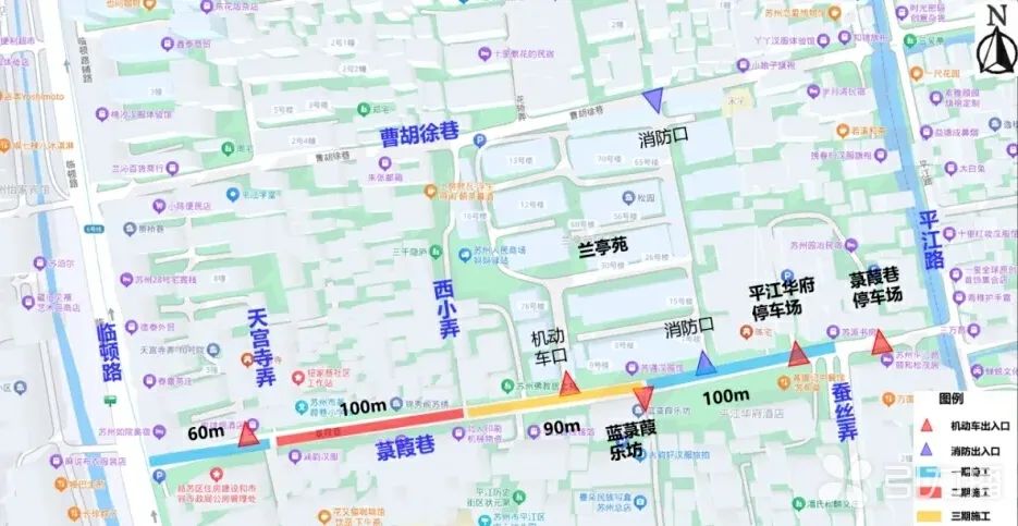6月20日至9月30日,平江历史街区的大巷将进行保护和改进。施工期间,大巷仅供内部车辆通行,保证内部居民、单位非机动车、行人正常双向通行。交通指导员工管理安排在施工段两侧,机动车交替通行。