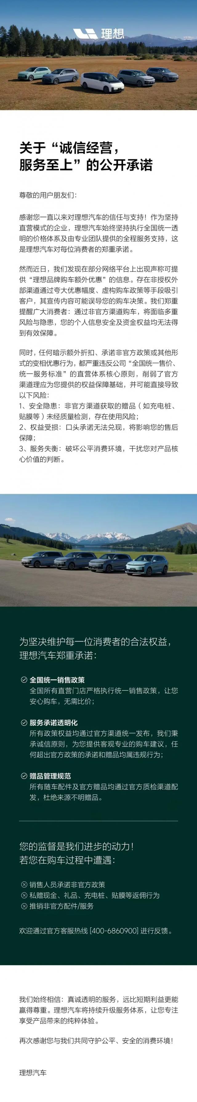 理想汽车:任何暗示的额外折扣和承诺的非官方政策都违反了企业的直接运营原则