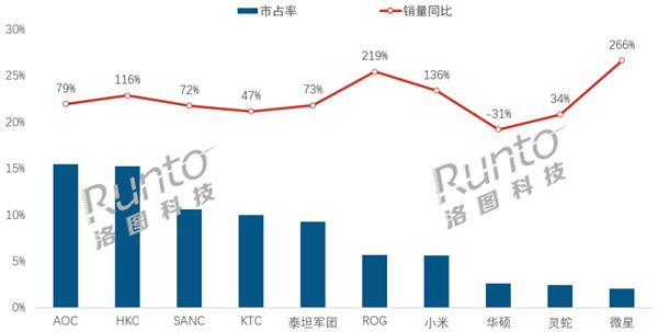 5月份电子竞技显示器销量猛增50%:AOC重返第一 小米第7
