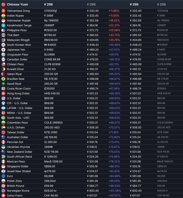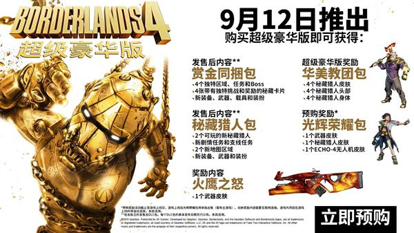 《无主之地 4》PC 版本比主机版本便宜 10 美元,而且国区比其他地区便宜,除了美元, 298 除了元的标准版外,还提供 428 块的豪华型和 558 元(如此接地气的数字显然来自同胞的手)超豪华型。每个版本的差异如图所示: