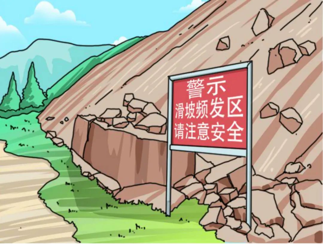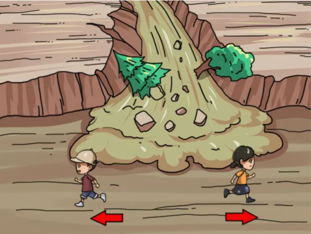 !当滑坡发生时,应该迅速逃到滑坡两侧。