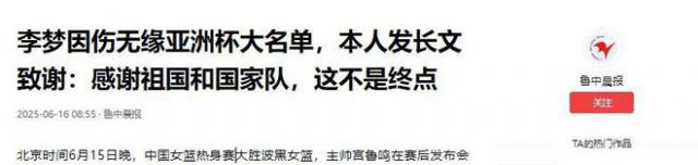 资料来源:鲁中晨报:李梦因伤无缘亚洲杯大名单,本人发长文致谢:感谢祖国和国家队,这不是终点。