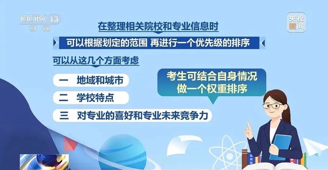 在整理相关院校和专业信息时,可以根据划定的范围进行优先排序。专家建议可以从以下三个角度考虑。——