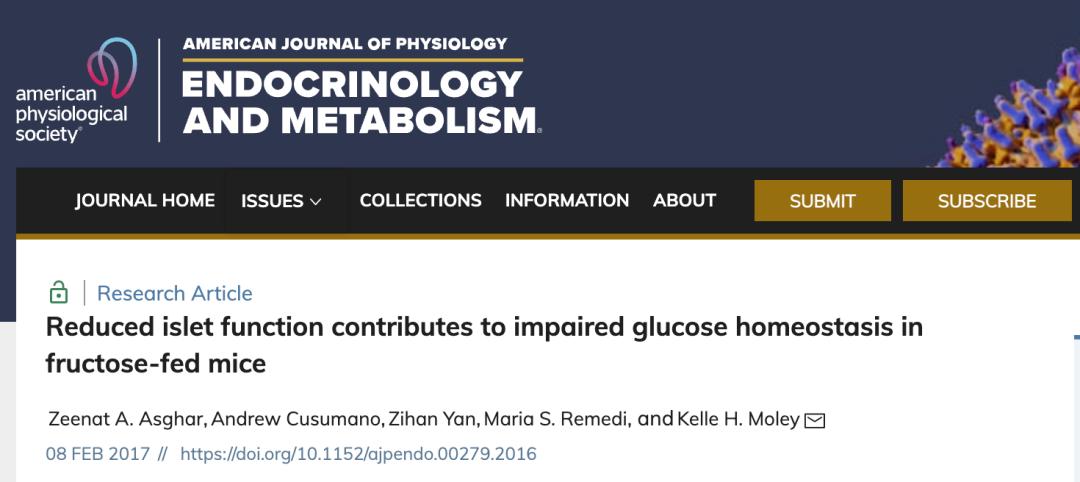 2017年发表在《美国生理-内分泌与代谢杂志》上的一项研究发现,在长期高糖饮食的刺激下,胰岛素的分泌会明显减少,胰岛β细胞功能受到不良影响,导致胰岛素分泌能力受损。