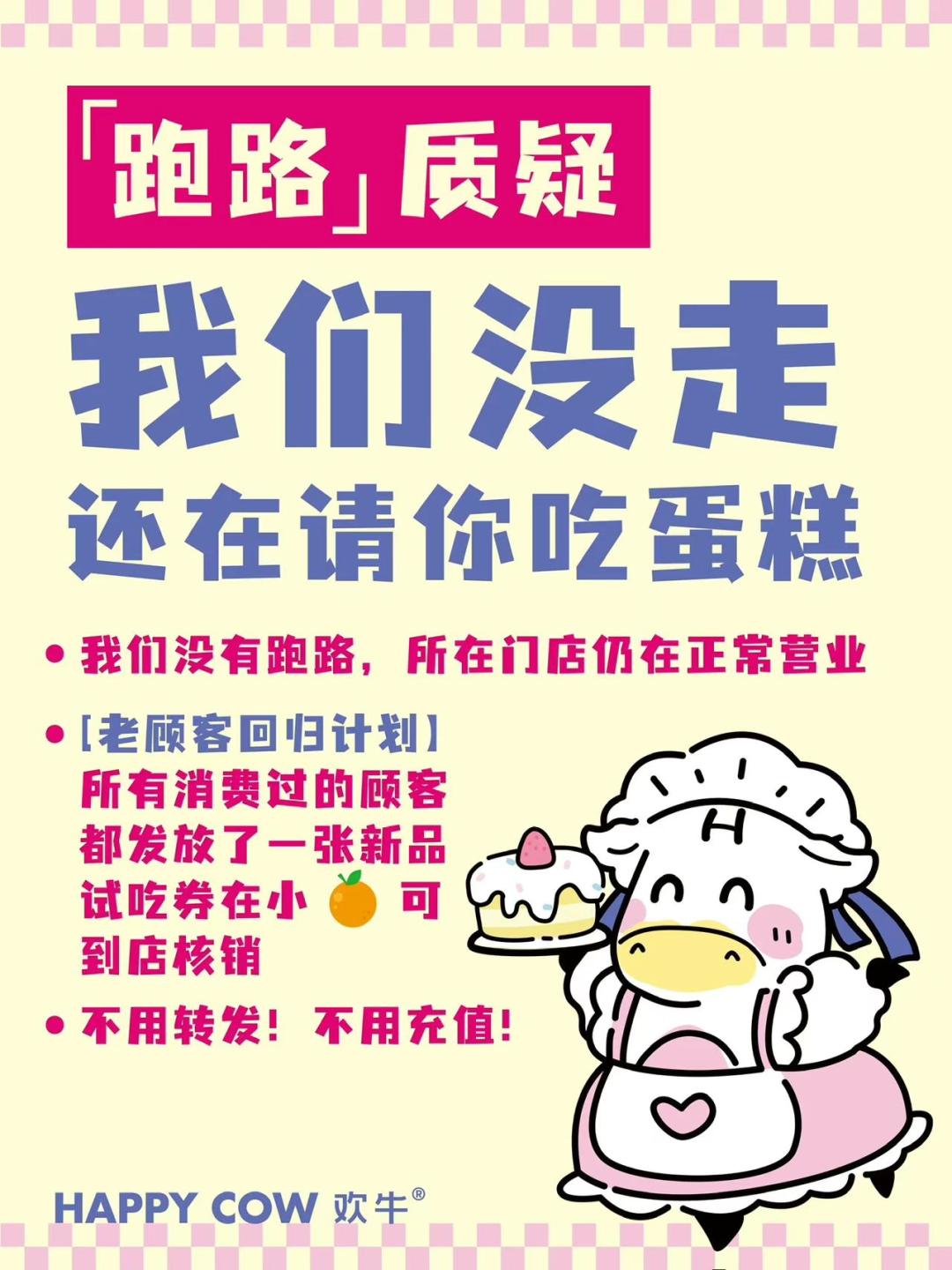 因为就在6月8日,欢牛蛋糕店官方刚刚回应“我们没有跑路”,并在其官方账号中回应“不,我们的店还在正常营业,团队每天都在Yi线做蛋糕、收银、服务。”