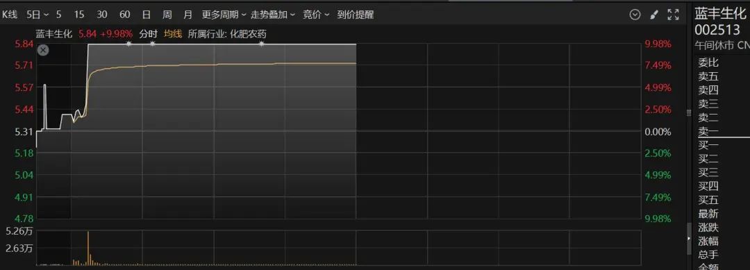 最近,害虫防治的概念继续走强。今天上午,成交量再次上升。该板块指数首次直线上涨超过3%,创下两年多来的新高。蓝丰生化日线涨停,苏利股权也触及日线涨停。6月份以来,涨幅超过52%,红太阳、绿亨科技等涨幅居前。