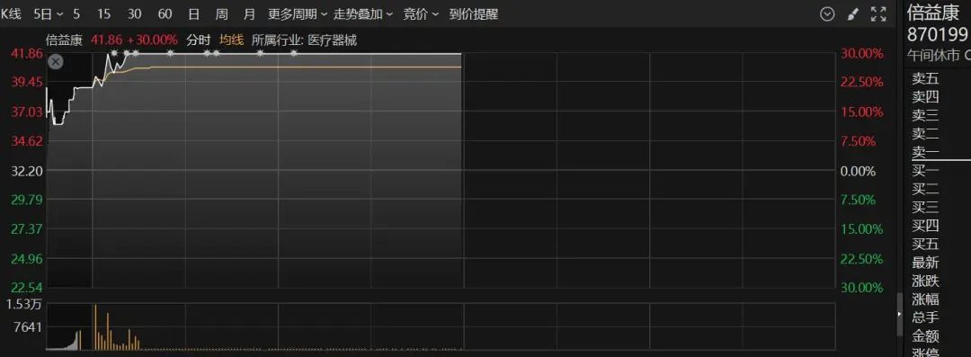 早上,人脑工程的概念大幅高开高走,板块指数一度飙升6%以上,接近年内最高点。不到一个小时,交易就超过了昨天的全天交易。倍益康日线跌停30%,创历史新高,北陆医药、爱友医疗等多芯20%日线跌停,麒盛科技、南京熊猫也逆势封板。