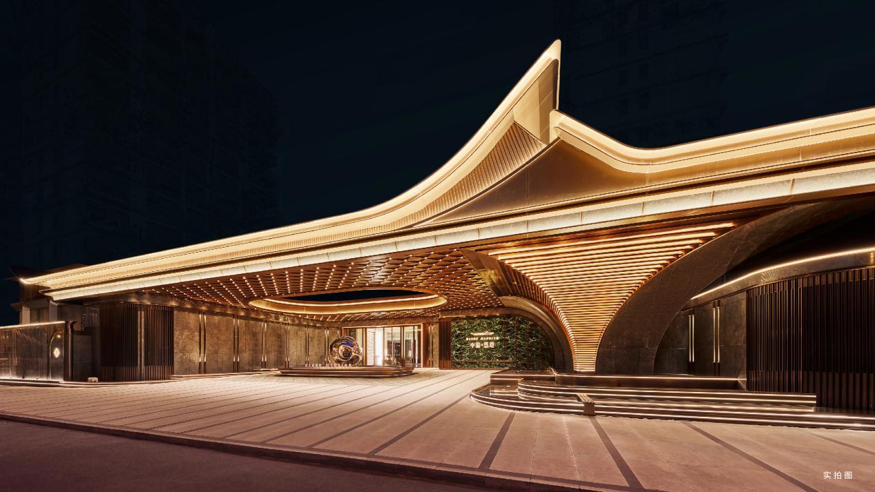根据规划图11,“一境云玺之门”的实景呈现。:1在恢复落地的设计中,我们选择了高约6米、宽约77米的巍峨庭院,并以各种质量细节营造出一种充满优待和尊重的回家感觉:酒店风格围绕客人,门庭中心主景观外的金属部分是手工制作的,而云心则选择了天然蓝色水晶,被称为“云波辰玺”,像日月星辰一样闪闪发光。