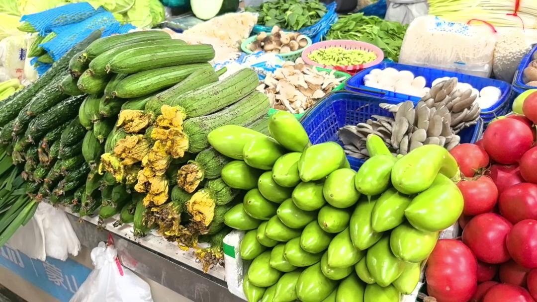 摊主向记者透露,受雨季影响,虽然部分青菜价格略有波动,但整体价格相对稳定,供应充足。目前苋菜一斤5.5元左右,当地黄瓜一斤6.5元,竹笋一斤3.5元。