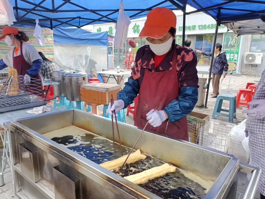 尽快在摊位前,人群络绎不绝。正忙着炸油条的刘姐,脸上洋溢着热情的笑容,熟练地翻着油条:“我在这里摆摊已经是第五年了。为了满足大家的口味,我特意做了五种不同口味的油条,很受欢迎。今年是我第三天摆摊,生意还不错!”言语中充满了对这种生意的热爱和骄傲。