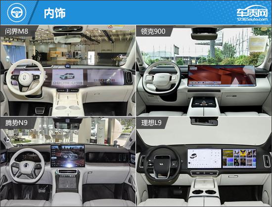 在内饰方面,四款车都非常了解国内消费者的需求,整体设计简单,非常注重科技感的营造,都配备了目前比较流行的副驾驶娱乐屏;除了腾势。 N9 此外,三款车型的副驾驶娱乐屏幕和中控屏幕采用集成设计,视觉冲击力更强。换挡方面,四款车都采用电子怀挡换挡,不仅操作方便,还有助于优化前排空间。