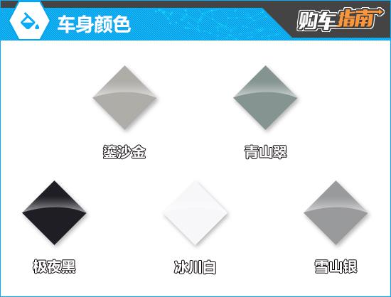 车身颜色方面,新车提供镀砂金、青山绿、极夜黑、冰川白、雪山银等。 5 颜色可供选择。就实际效果而言,雪山银与镀砂金的外观更加突出,顾客可以优先考虑。