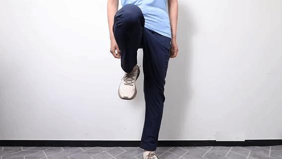 坐着时膝盖不起包,起立时裤脚不缩成九分裤。