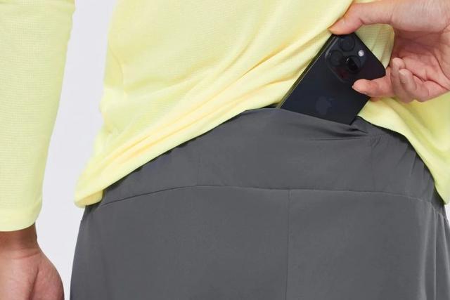 腰部开放式弹性口袋,可塞入 6.7 寸手机;
