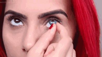 女孩画眼线刷睫毛膏时,稍不注意,有些成分会进入眼睛,刺激结膜角膜,造成伤害。