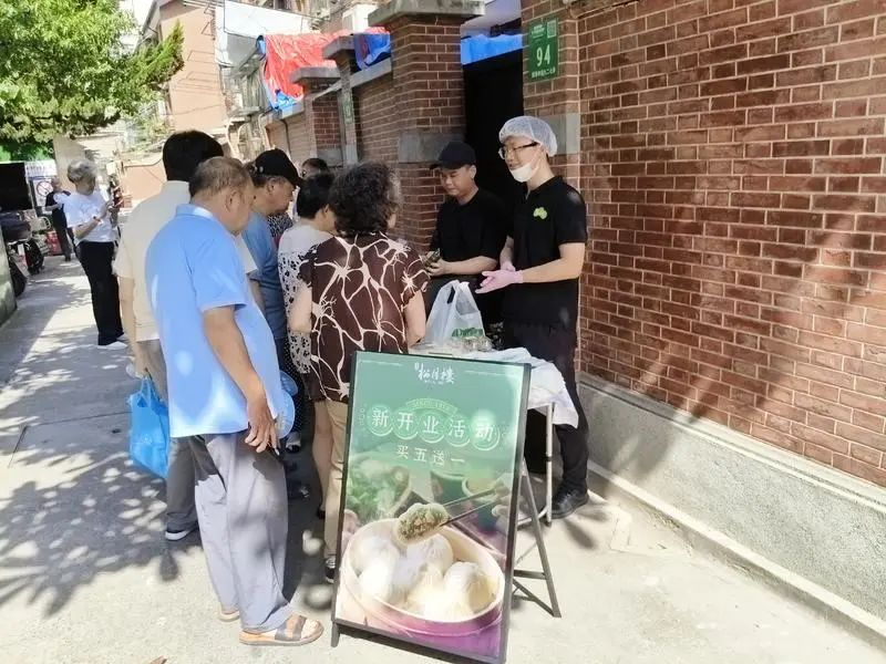 “我最喜欢松月楼的蟹粉包子。大家带来的太少了。我没有买。这么热的天,我真的不想在淮海路的柜台买……”市场开始后不久,松月楼带来的蟹粉包子等商品宣布售罄。住在淮海坊的刘奶奶向工作人员表达了自己的缺点。工作人员迅速回应:“阿姨,我们马上安排人回店里拿。半小时后,你可以再来我们的摊位,保证你能买到蟹粉包。”