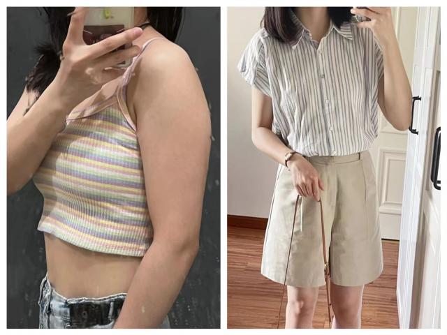 其它部分选用细竖条纹,从上到下垂直延伸,肚子上的小肉都是“看不见”的,大胸穿也不会显得强壮。 ,反而更有曲线!