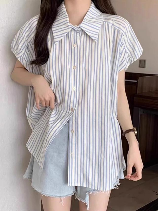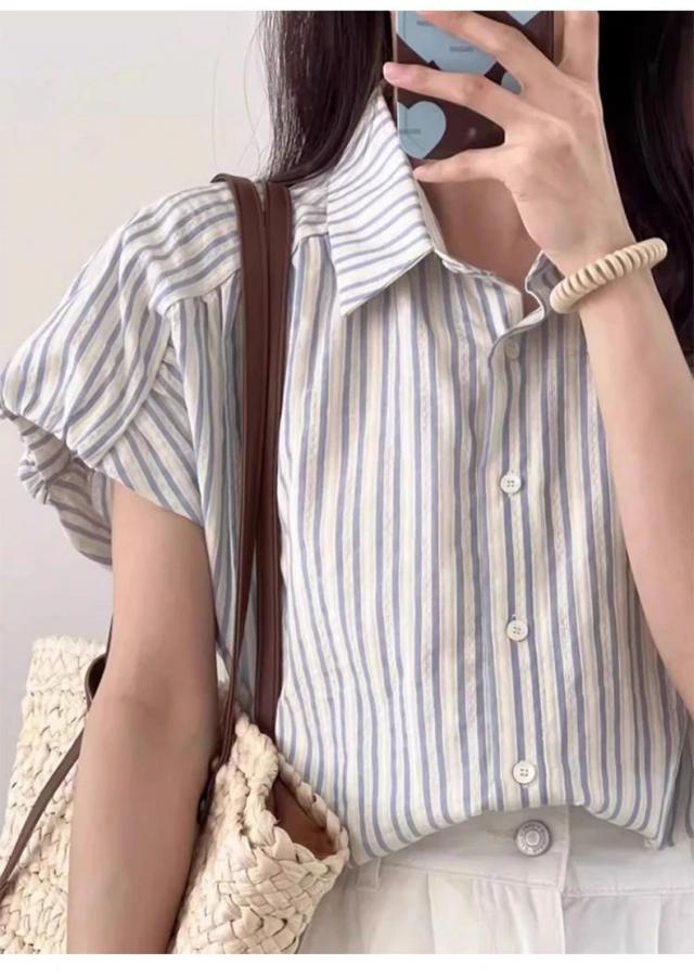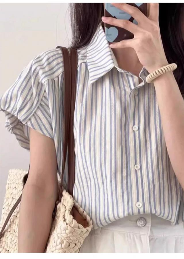 看看这个夏天爆红的这个 「姹弥 · 小飞袖条纹衬衣」