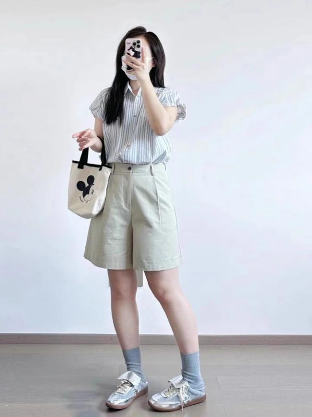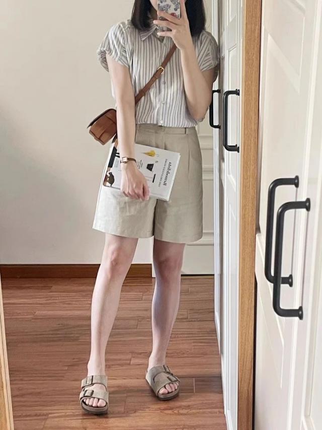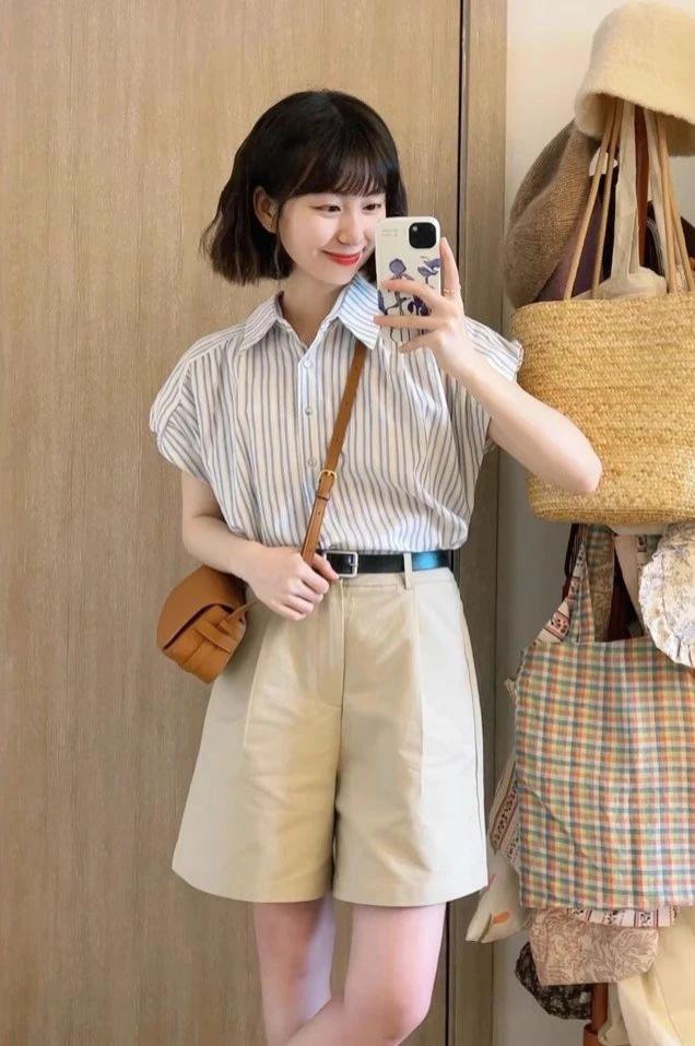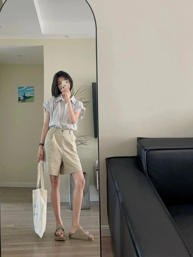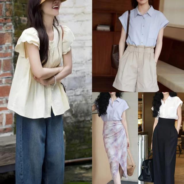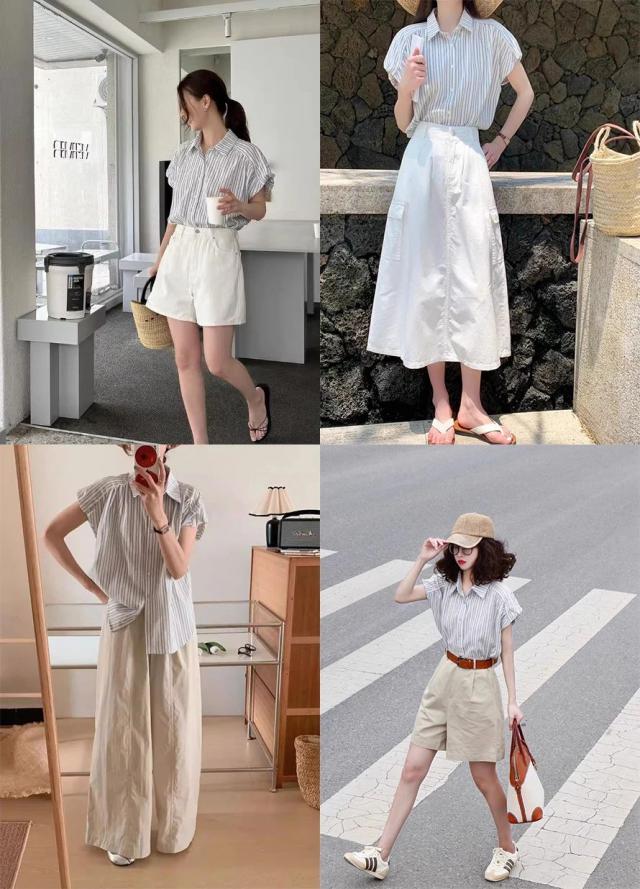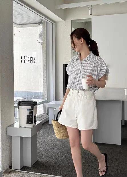 衬衣 短裤 / 牛仔裤,小飞袖自带 法式慵懒 ,配上双凉拖,韩范欧尼气氛十足;
