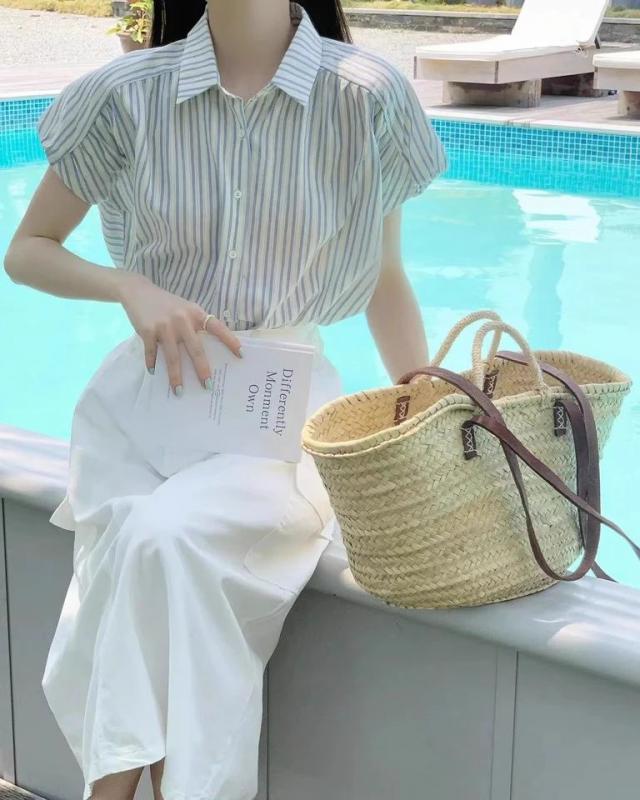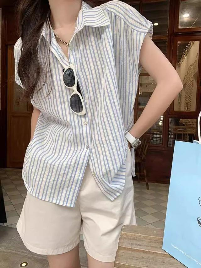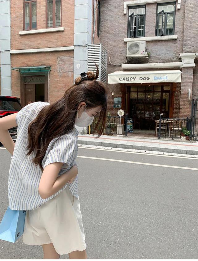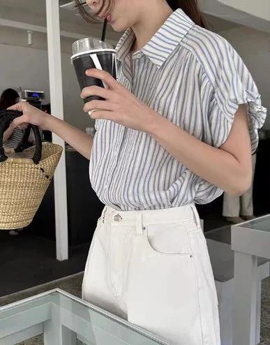 走在街上,你不仅可以感受到衬衫面料的透气性和舒适性,还可以通过配色和款式带来自己的“松弛滤镜”,轻松摆脱路人的感觉。这件小飞袖条纹衬衫真的很闭眼!