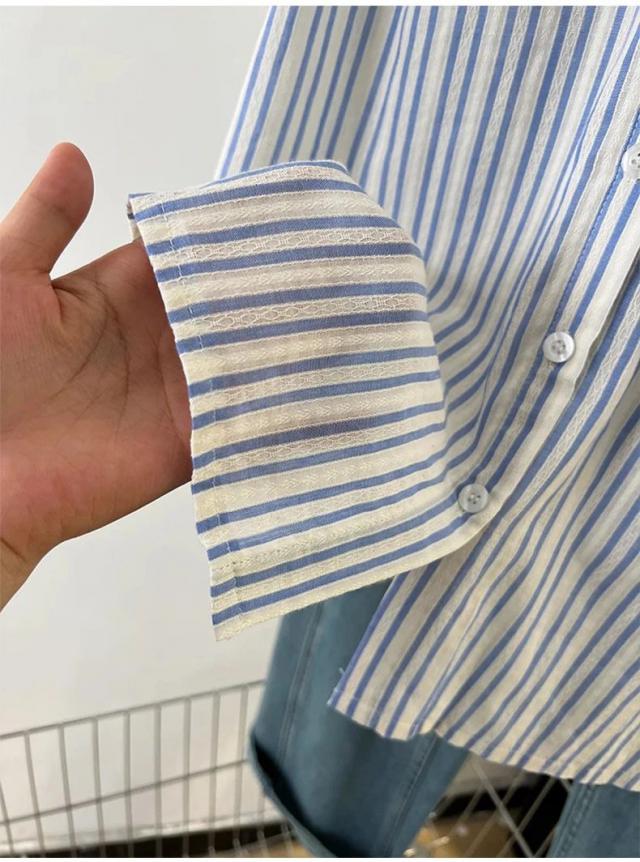 穿着这件条纹衬衫工作,也是被办公室的同事催着上架链接。 ~