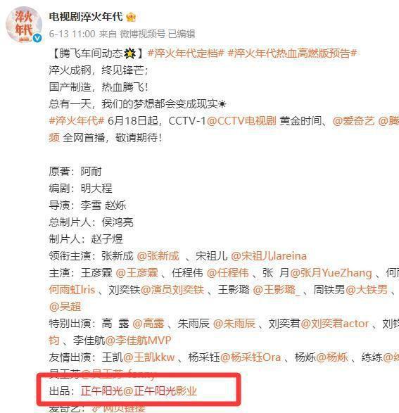 但是再看看《淬火时代》,看看这个制作——正午阳光,这四个字就像是一颗定心丸,让大家放下心来。