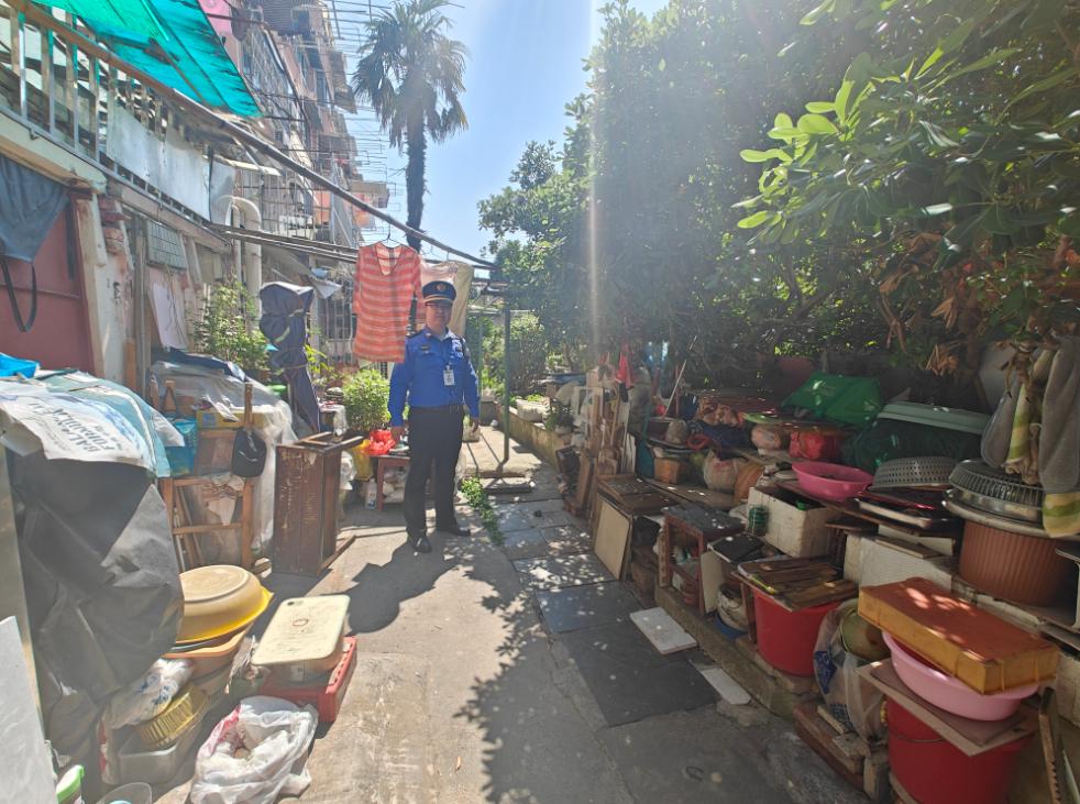 事件来自社区物业的日常检查。工作人员发现,一位80多岁的老人习惯性地在绿化带里堆放废纸箱、花盆等杂物。简单的清洗很容易,但是如何让老人愿意合作而不伤害他的心呢?彭浦镇综合行政执法队没有选择“一清二楚”。