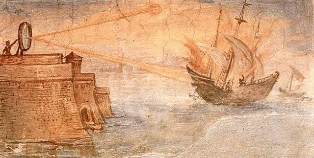 也许设计者的偶像是阿基米德,想要模仿用来摧毁罗马船只的“死亡射线”。