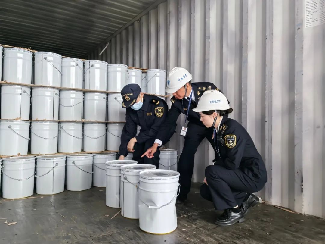 2025年3月,执法人员以普通货物名义对4个名为“羧基丁苯胶乳”的集装箱进行开箱检查,发现内部有疑似危险货物。经核实,该货物被定义为“国际海运危险货物规则”第八类危险货物(腐蚀性物质),正确运输名称为“氢氧化四甲铵溶液”,联合国号为UN1835。