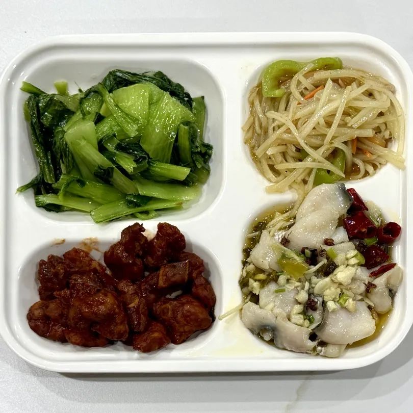 腌鱼,茄汁鸡块,酸辣土豆丝,炒菜时蔬菜
