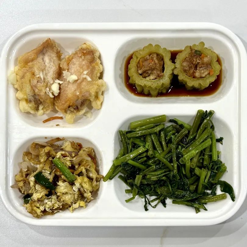 大蒜鸡翅,苦瓜酿肉,洋葱炒鸡蛋,炒菜时蔬菜