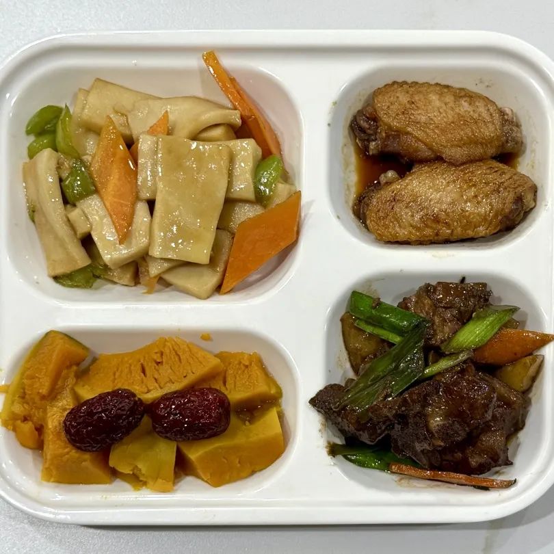 可乐鸡翅,土豆排骨,芹菜炒千页豆腐,红枣南瓜