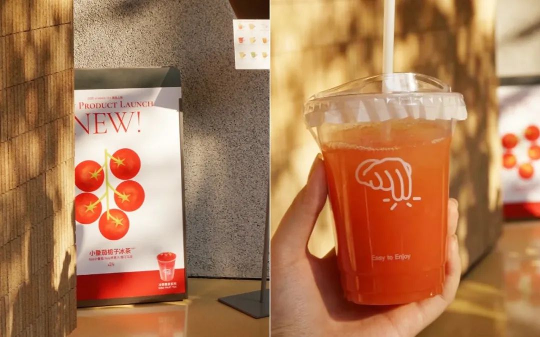 "既要做产品,又要做创意",同样的想法下还推出了苹果大红袍、荔技金骏眉、兰皇金观音奶茶、小番茄栀子冰茶等商品。