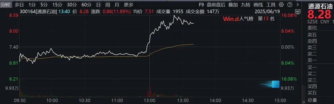 中东矛盾加剧,下午石油板块持续大幅上涨。该板块整体涨幅接近5%,通源石油涨幅超过11%。下午,国际工业直线上涨。此外,许多股票,如准油股票和茂化实华股票,中曼石油和贝肯能源都大幅上涨。