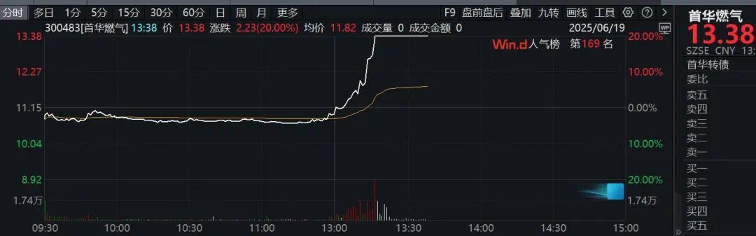 燃气股盘里拉涨,首华燃气、新疆浩源、蓝焰控股直线拉涨涨停,凯添燃气上涨10%以上。