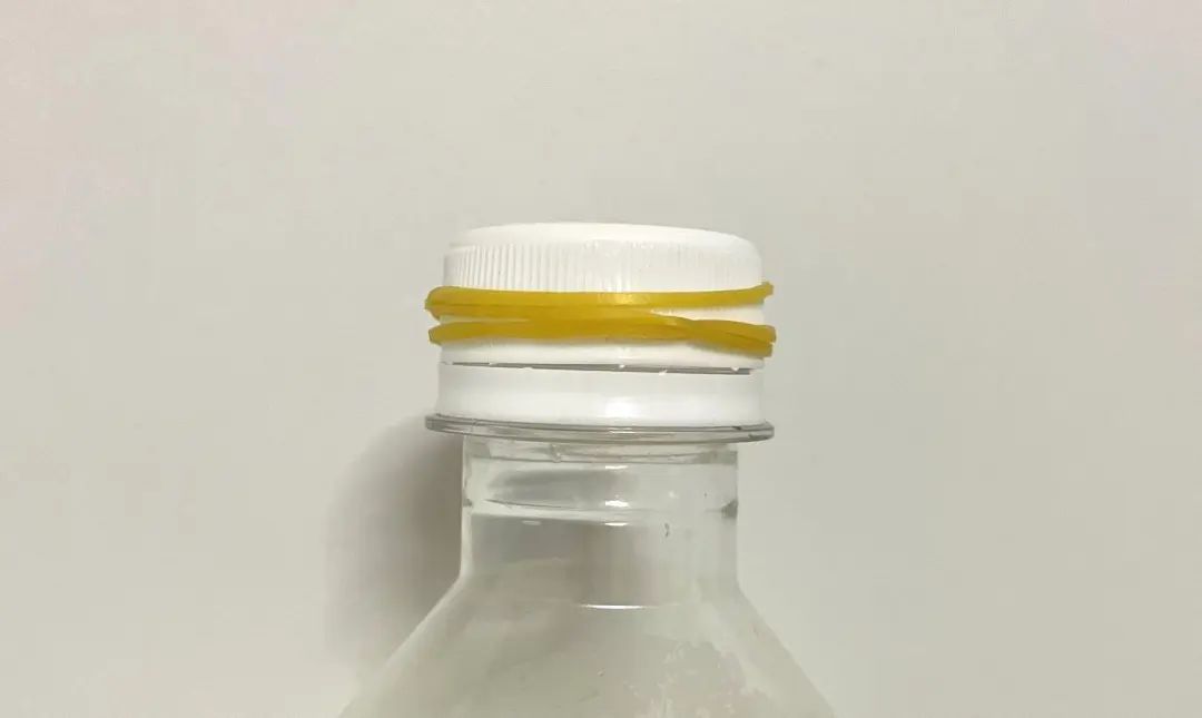 将橡皮筋缠绕在瓶盖上,可增加摩擦力,防止瓶盖脱位。这也能减轻瓶盖纹理磨手的疼痛,使人更容易施力。