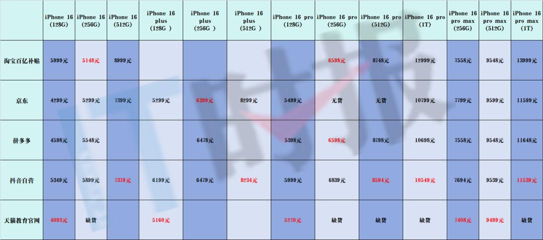 相比之下,JD.COM自营旗舰店的价格略显传统。虽然部分Plus系列在JD.COM略有优势,但iPhone 16 部分版本的Pro系列仍然缺货。