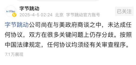 在今年 4 月宣布第二次延期后,字节跳动发布公告称:“字节跳动公司仍在与美国政府讨论,没有达成任何协议,双方在许多关键问题上仍然存在矛盾。根据中国法律,任何协议都必须经过相关审查程序。”
