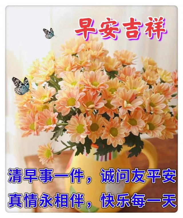 晨钟在风中响起,问候在远处挥之不去。愿你天天开怀大笑,幸福快乐。祝福跟随你的脚步,好运跟随你的愿望,愿你的生活充满灿烂,每一天都像阳光一样美好!早上好!