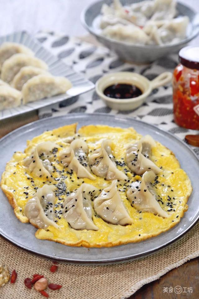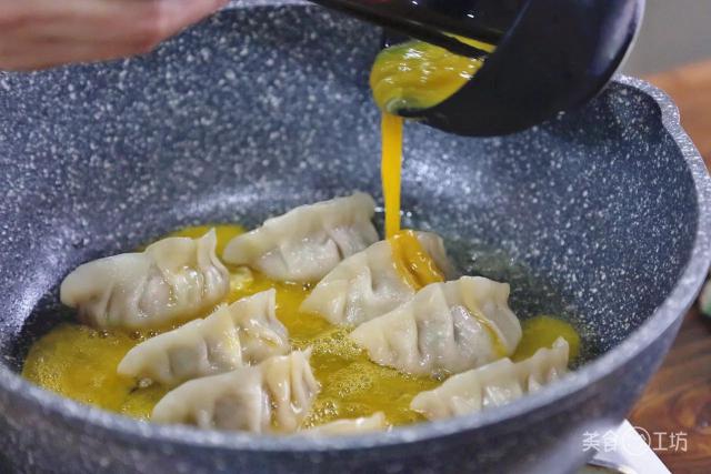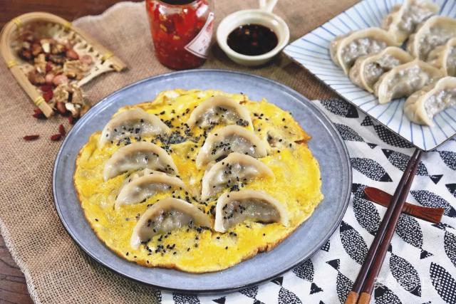 金黄可口的鸡蛋煎饺就做好了。通常,饺子应该放在冰箱里。早上来这样的鸡蛋饺子,再配上一杯牛奶,营养又好吃。