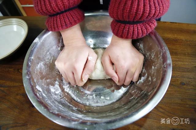 4. 擀皮加水量-加水要慢慢加水,因为饺子皮最好硬一点,面团会越揉越软,如果太硬就加点水。