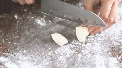 2. 将面团揉成均匀细长的条状,将粉末撒在案板上,然后用刀切成剂子或直接用手取出剂子。